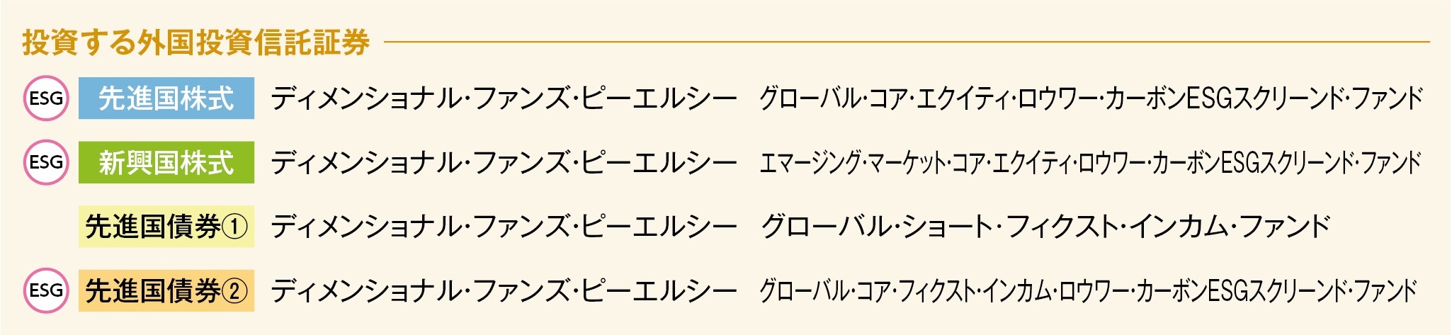 ①先進国株式(ESG):ディメンショナル・ファンズ・ピーエルシー グローバル・コア・エクイティ・ロウワー・カーボンESGスクリーンド・ファンド